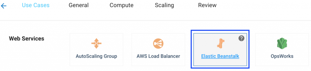 The Creation Wizard imports the existing Beanstalk environment configurations. By default, the Elastigroup name is the Beanstalk environment ID, however, it's recommended to use the existing Beanstalk environment name. The Elastigroup name can be configured in the General tab.